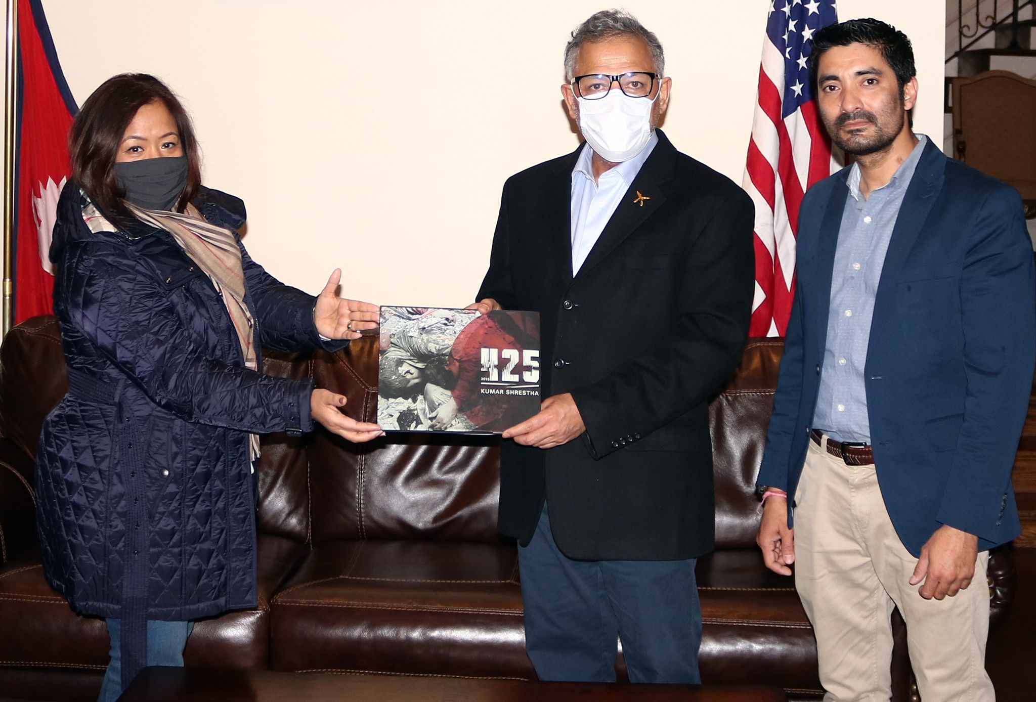 उनीद्वारा खिचिएका महाभूकम्पको फोटो पुस्तक आइतबार अमेरिकास्थित नेपाली राजदूतावासमा सार्वजनिक भएको छ । अमेरिकाका लागि नेपाली राजदूत डा. अर्जुनकुमार कार्की र अमेरिका नेपाल सोसाइटीकी अध्यक्ष प्रभा भट्टराई देउजाले संयुक्त रुपमा पुस्तकको लोकार्पण गरेका हुन् ।